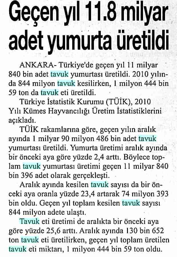 Geçen Yıl 11,8 Milyar Adet Yumurta Üretildi.