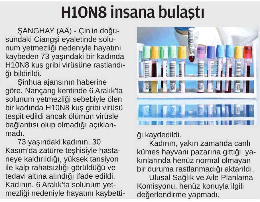H10N8 İnsana Bulaştı.